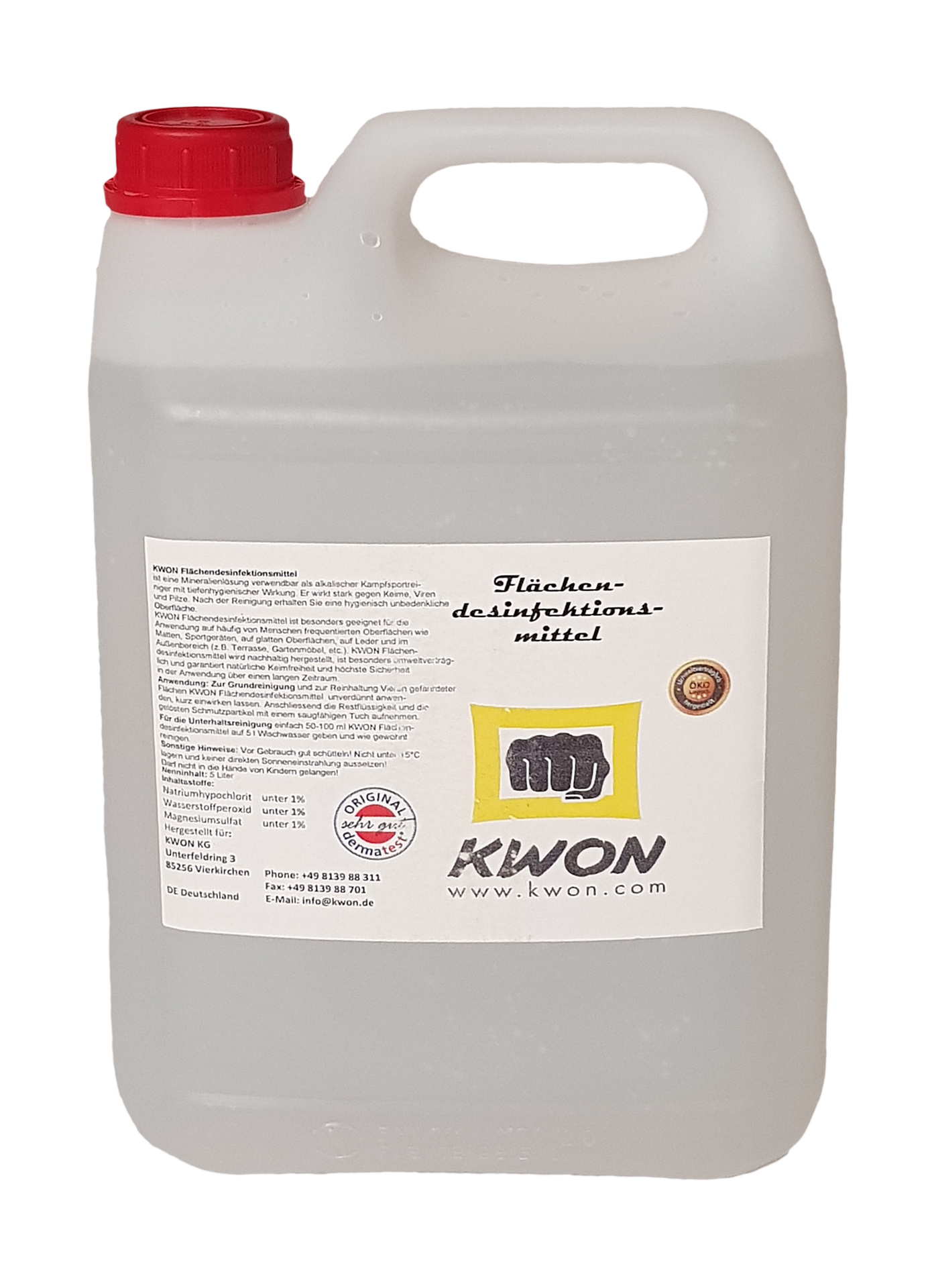 KWON Flächendesinfektionsmittel 5 LiterDas Flächendesinfektionsmittel ist eine Mineralienlösung, verwendbar als alkalischer Kam...